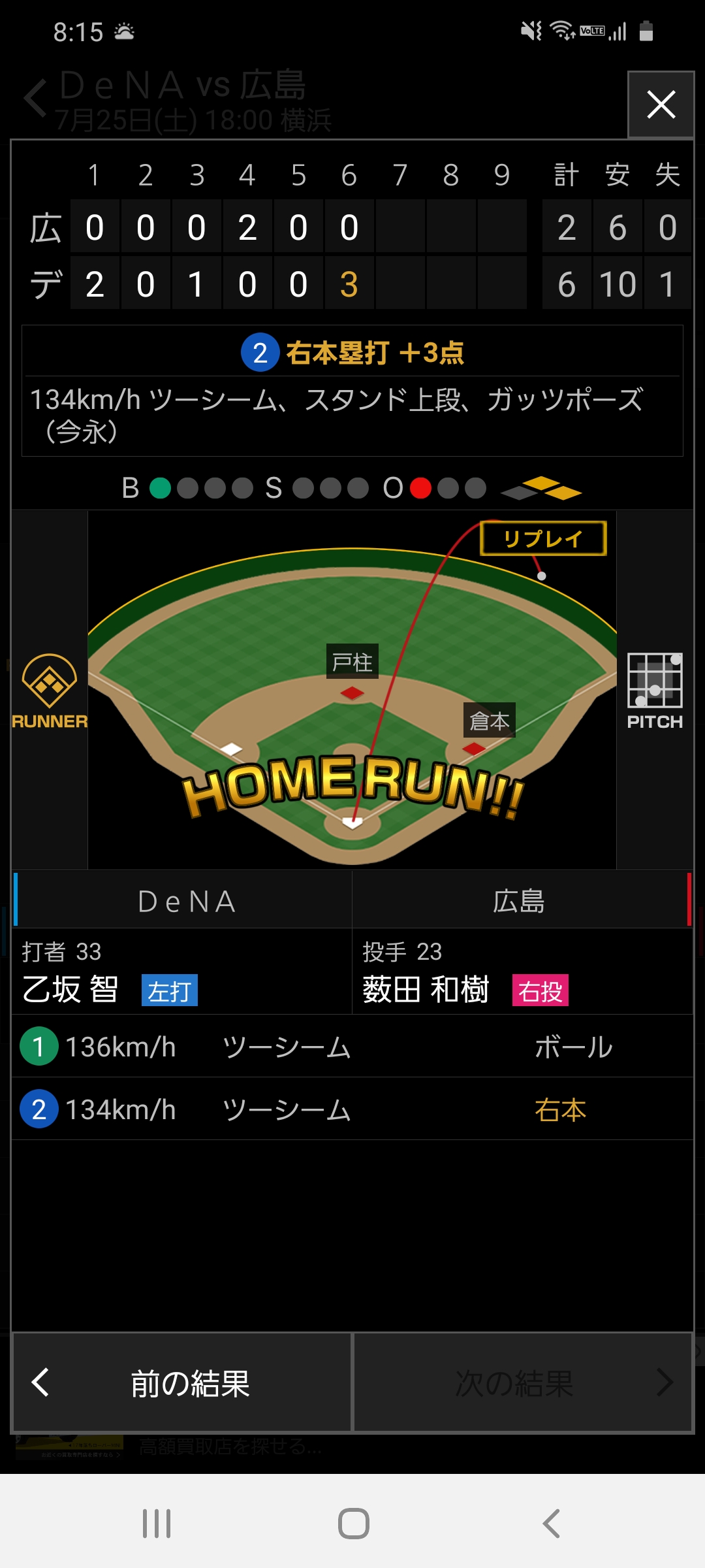 戸柱が選んで倉本がヒット乙坂がホームラン