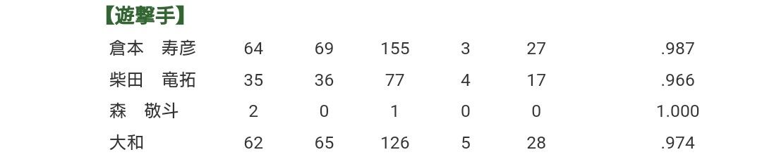 2018 【二塁】倉本・ソト・柴田 【遊撃】大和・柴田